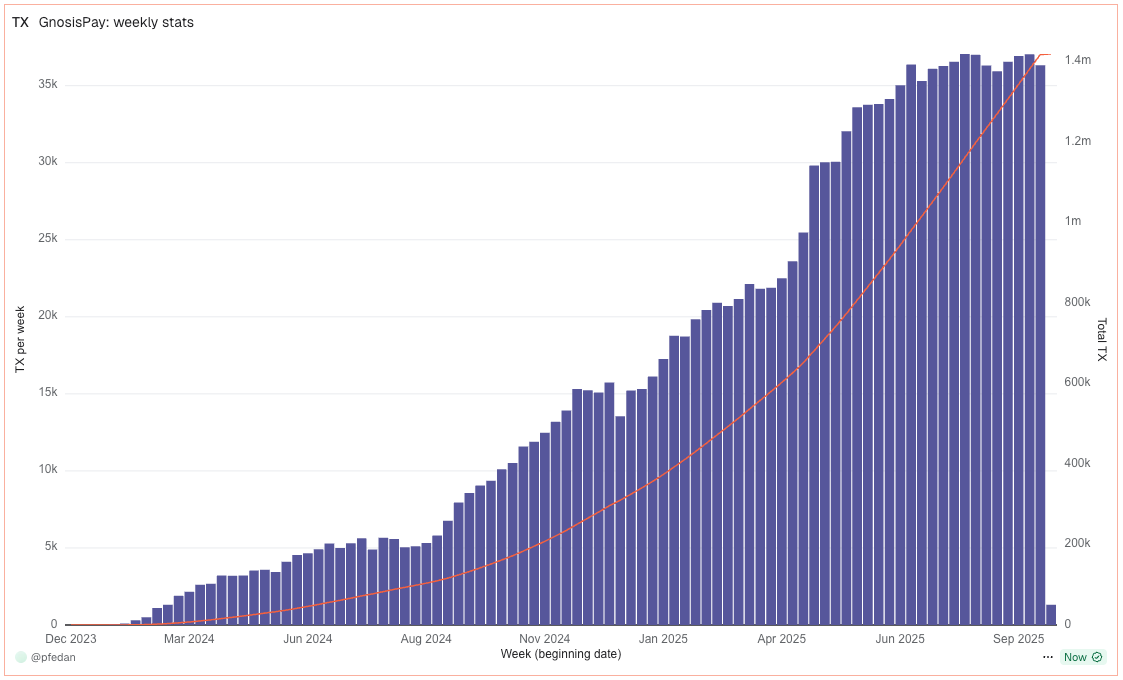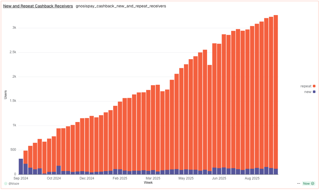 September marks one year since the launch of the Gnosis Pay Rewards programme under GIP-110. In that time, the number of users has rocketed, spend growth has accelerated, and 10,000 GNO has been distributed. By all accounts, the programme has performed as intended.